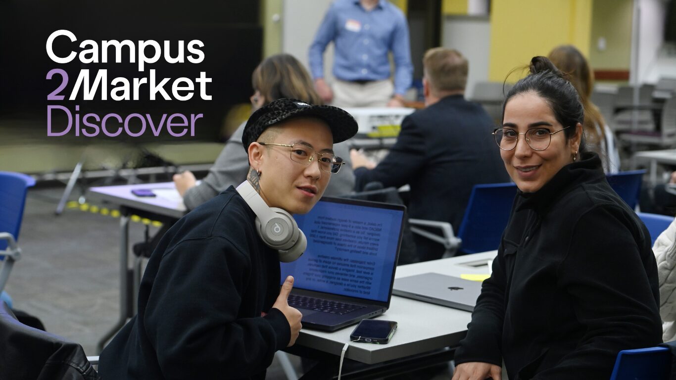 Campus2Market Discover is offered free of cost during the fall and winter semesters. The fall program serves as an introduction, while the winter sessions dive deeper into innovation and entrepreneurship topics such as learning to identify and match problems with solutions, articulate a business’s value proposition, grasp the fundamentals of human-centered design, and much more.